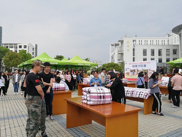 4月2日中午,学生处在下沉式广场举办叠被子比赛,学生处处长、各二级学院党总支副书记等参加了开幕式。