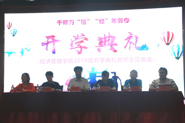 时维九月,序属三秋,大地流金,万物呼晴。千禧龙娃,衢职报道,南孔圣地,儒风习习,书香墨韵,有礼谦逊。9月10日,值此教师节之际,经济管理学院在图书馆一号报告厅举行2018级开学典礼暨师生见面会。开学典礼由经济管理学院党总支书记斯彬彬主持,校党委委员、副校长黄云龙,经济管理学院党政领导班子和教学服务团队、专业主任团队、全体辅导员、班主任和全体新生参加了开学典礼。