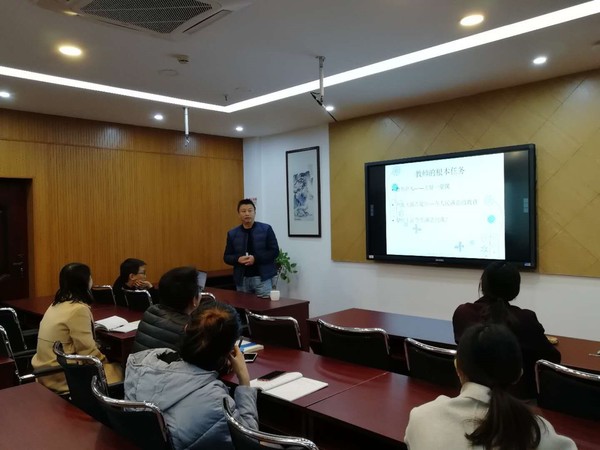 余老师以“以教学常规入手, 逐步提升教学技能”为主题, 介绍了教学常规,详细解读了授课计划、备课、上课、作业布置与批改、考试与评价、课后反思及校本教研。 余老师强调了教师要做到“脑中有纲”、“胸中有本”、“目中有人”、“心中有法”、“手中有技”,不断学习新的教学理念,钻研教材,精心设计教学每一个环节,形成课后反思习惯,提高自己的教学水平,进一步提升教学质量。