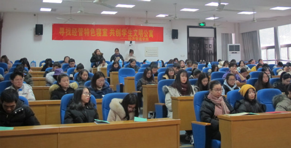 寝室是同学们生活、休息的场所,文化学习、思想交流的重要阵地,锻炼其社会交往能力的理想空间,也是学生综合素质的训练营。经济管理学院开展“寻找经管特色寝室”和“文明示范寝室”即是希望以寝室为载体引导学生养成良好的学习、生活和锻炼习惯,提升其文化、心理、身体等综合素质。