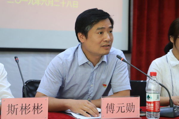 傅院长在会上首先对新一届党总支表示祝贺;其次对上一届党总支的工作表示肯定;最后对新一届领导班子提出了加强学习、明确职责、注重团结、廉洁自律的四点期望。