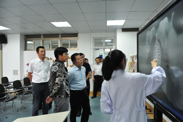 7月10日下午,劳新江一行在校党委书记崔戴飞、校长江爱民等陪同下,参观了我校医学院实训楼、 经济管理学院实训基地。学校办公室、合作发展处、计财处、经济管理学院、继续教育学院等部门相关人员参加签约仪式和参观考察。