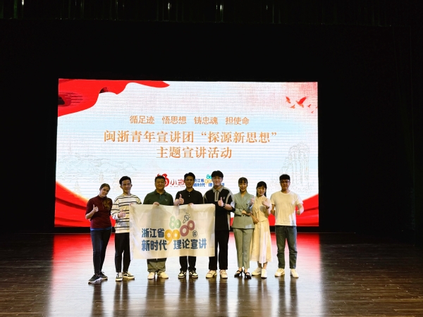 4月28日至30日,由福建省委宣传部、福建省委讲师团主办的“循足迹 悟思想 铸忠魂 担使命”闽浙青年宣讲团“探源新思想”主题宣讲活动在福州市举办。浙江省“8090”和“00后”新时代理论宣讲走亲团受邀至福建与“福小宣”青年宣讲员共同走进福建农林大学、闽江学院、福建师范大学展开宣讲,并在师生中引发了强烈反响。浙江省“00后talker”宣讲团成员、我校00新时代理论宣讲团团长郑德镇同学作为全省高校唯一代表参加。