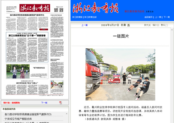 《浙江教育报》头版2024年5月17日报道 本报通讯员 欧阳洪萍 胡雅倩