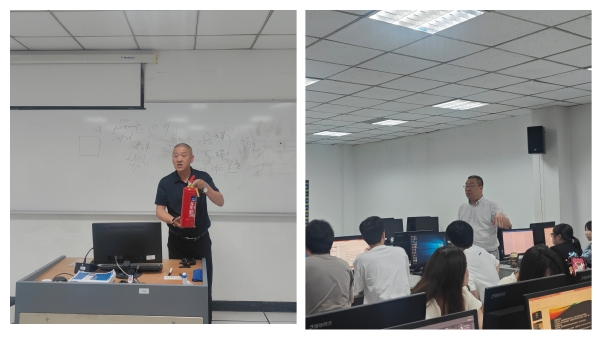 演练开始前,后勤保卫处干部深入学生上课班级,开展消防安全知识宣传和灭火器使用培训,并对疏散演练的要求和注意事项进行了细致的讲解,为疏散演练做好充分准备。