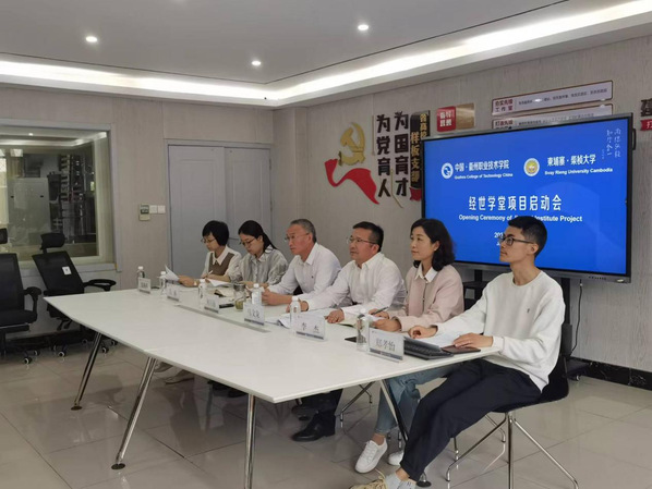 双方就经世学堂项目场地建设、专业教学平台设备、留学生培养、揭幕仪式和“中文+职业技能培训等内容进行了交流研讨。