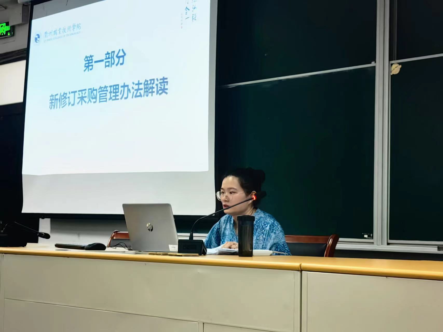 计财处采购管理科就学校新修订采购管理办法的重点内容进行了解读,以及对自行采购、采购项目申报、采购合同签订、采购验收等采购相关业务注意事项进行了强调说明。