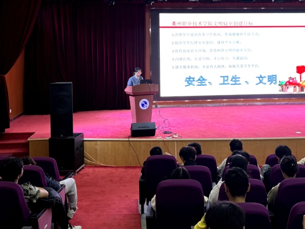 为提升我校寝室长队伍的综合素养与工作效能,充分发挥其在文明寝室建设中的引领作用,增强学生自我管理、自我服务及责任担当意识,积极营造优良、和谐的寝室氛围。学工部于10月31日中午在图书馆一号报告厅举办了文明寝室创建专题培训会。
