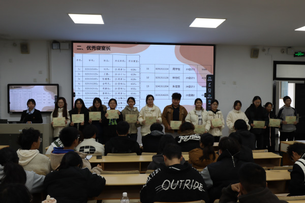 会上对文明寝室、优秀寝室长以及表现优异的纪检部干事进行表彰。