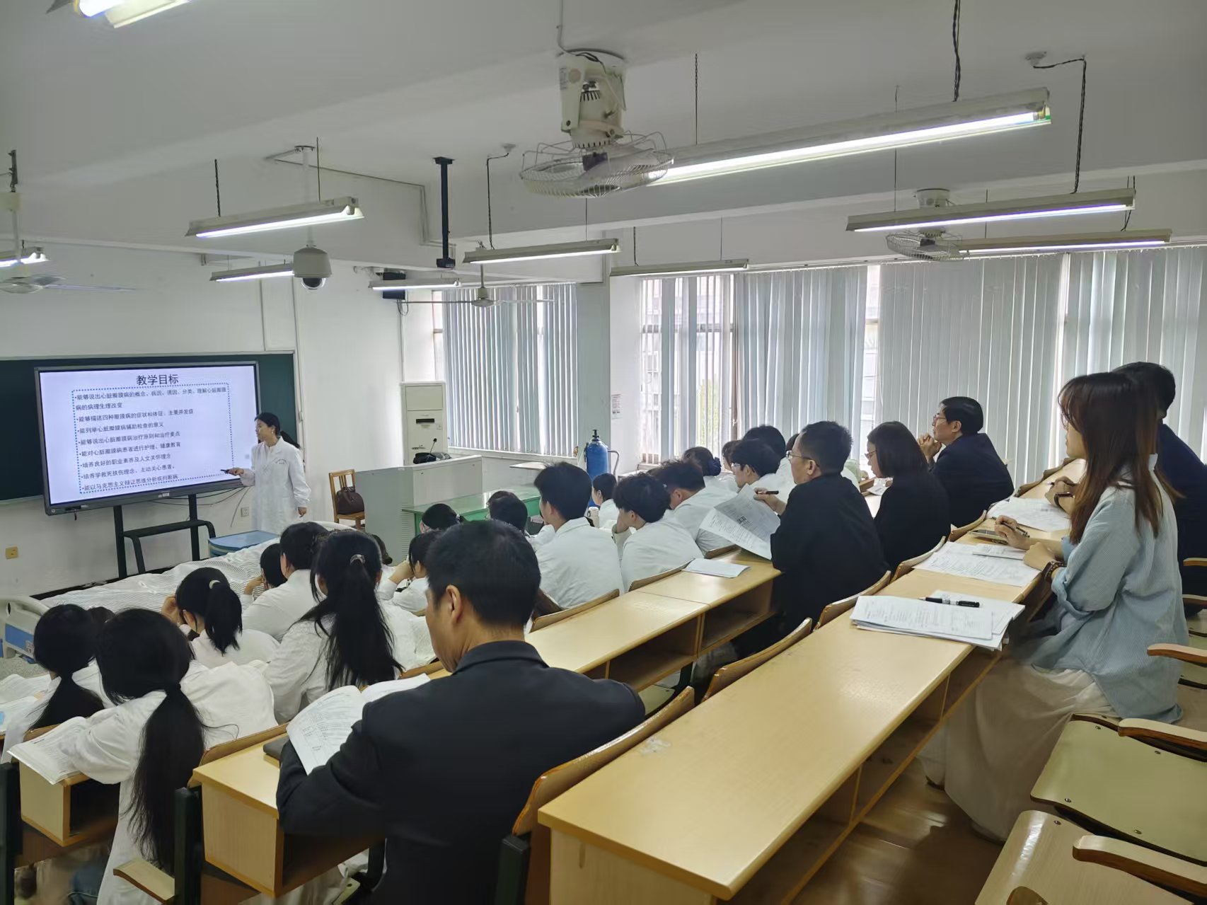 4月16日上午,校党委书记徐须实走进医学院吴敏娟老师《内科护理问题与能力进阶》课堂,参加“三进三评”听课、评课活动。