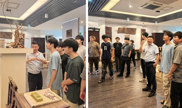 随后,师生来到二楼的古家具文化展厅。在陆小赛教授的讲解下,留学生们通过沉浸式观摩,深入了解了中式传统家具的造型逻辑与榫卯结构之美,对其蕴含的匠心工艺与文化内涵赞叹不已。